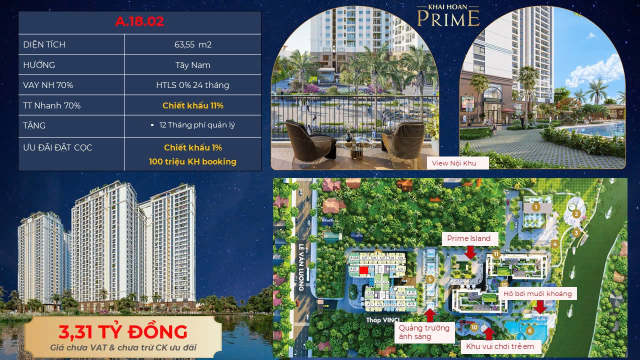 Gía bán căn hộ Khải Hoàn Prime chỉ từ 45tr/m2 ,- Căn hộ bàn giao nội thất cao cấp được các nhà đầu tư đánh giá là căn hộ đang có mức giá phù hợp để Đầu Tư – An Cư trong giai đoạn 2024 – 2030 .