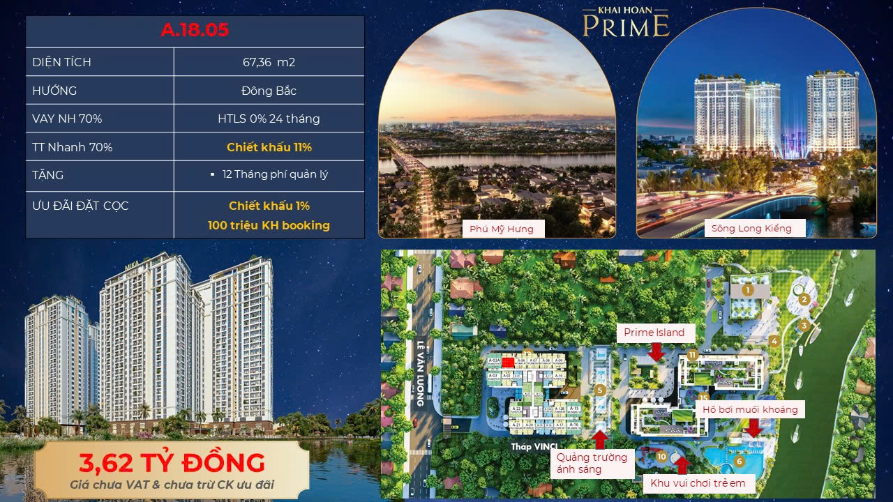 Kết luận : Dự án căn hộ Khải Hoàn Prime rất phù hợp mua đầu tư trong giai đoạn 2024 – 2026 , vì giá bán căn hộ Khải Hoàn Nam Sài Gòn chỉ đang giao đông từ 45tr – 53tr/m2 –TRẢ CHẬM 25 THÁNG – RẤT PHÙ HỢP ĐẦU TƯ