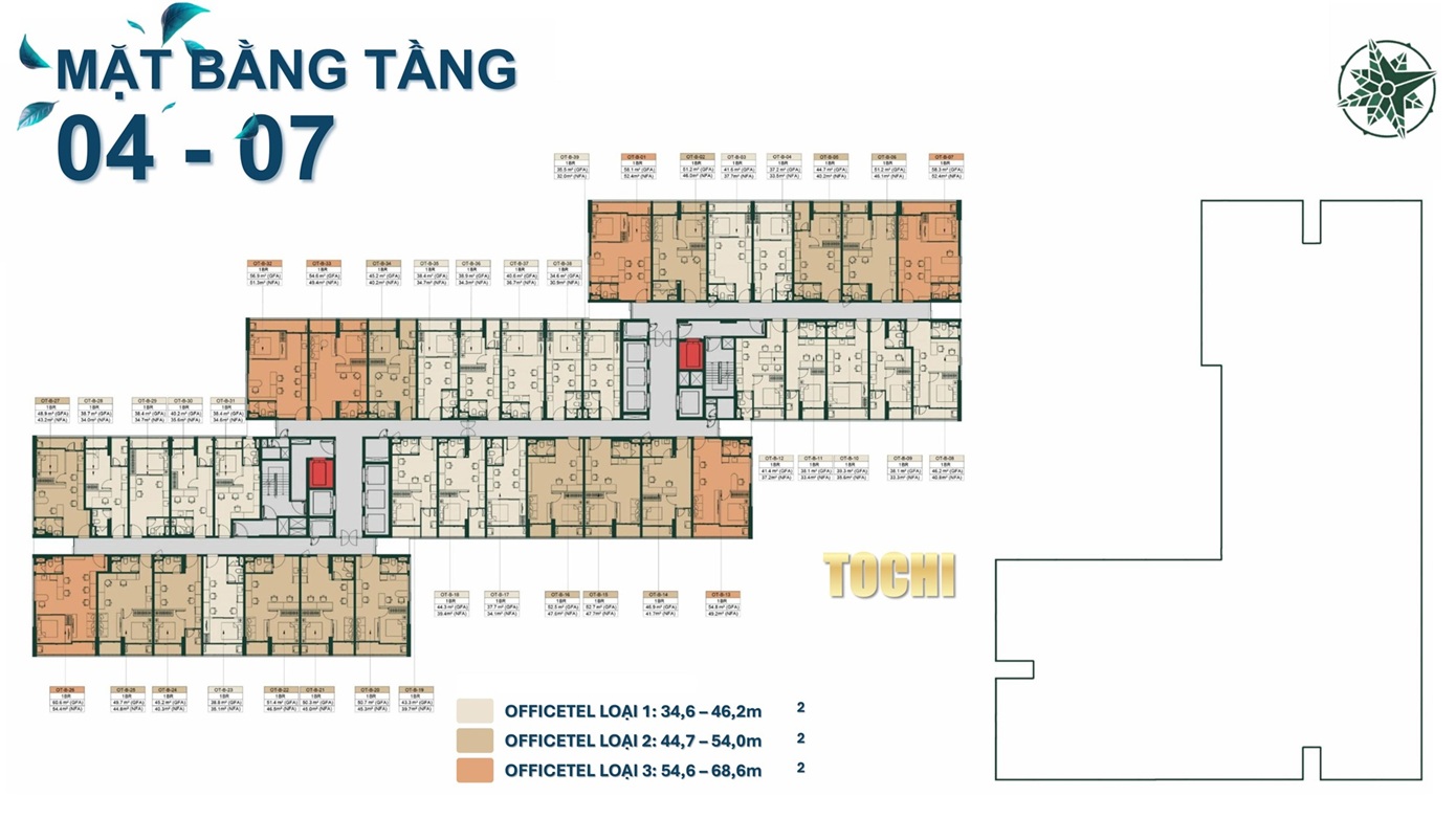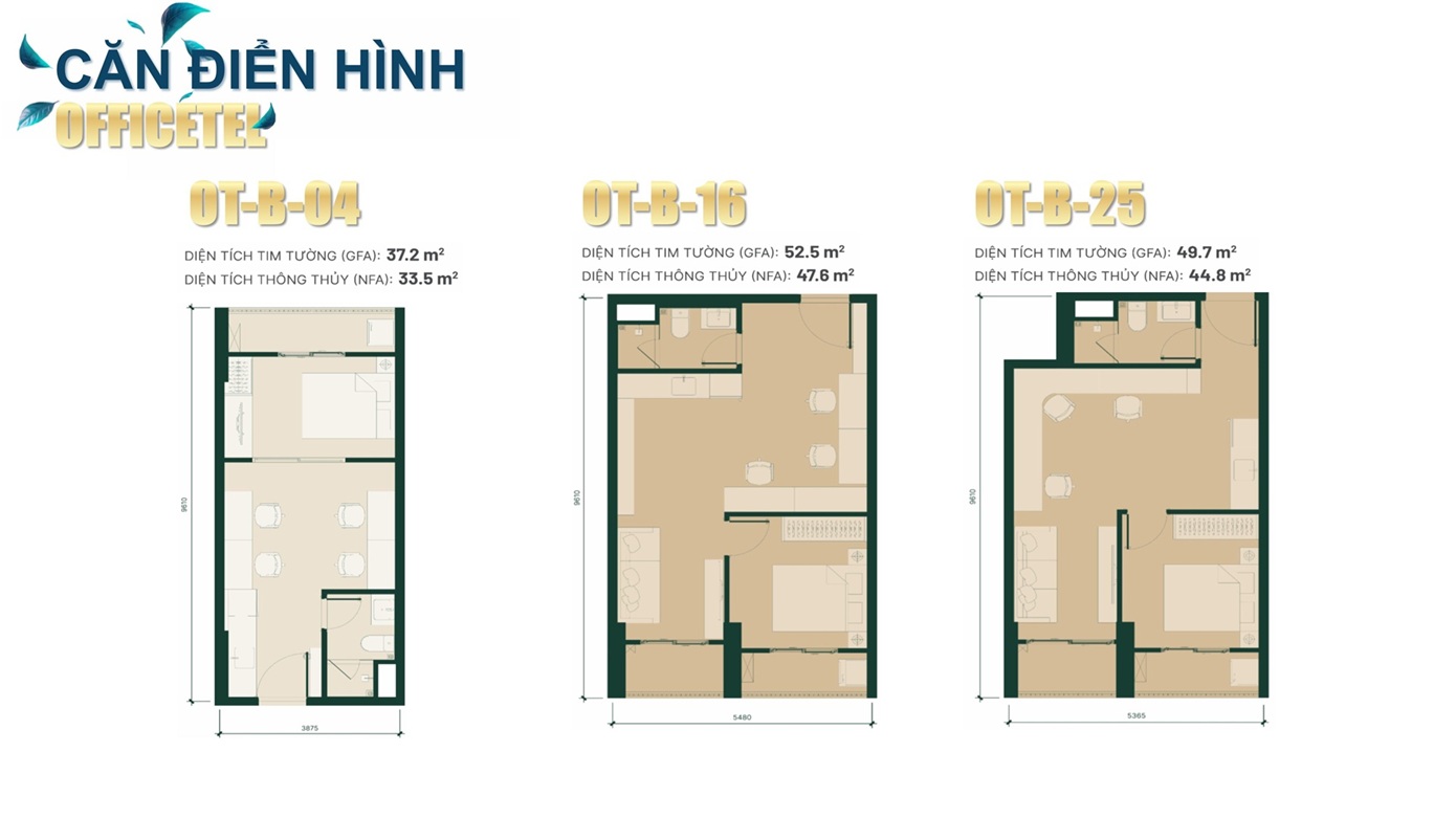 | Căn hộ dịch vụ – Officetel | 37m2 – 49m2 | từ 1.3 tỷ /căn |