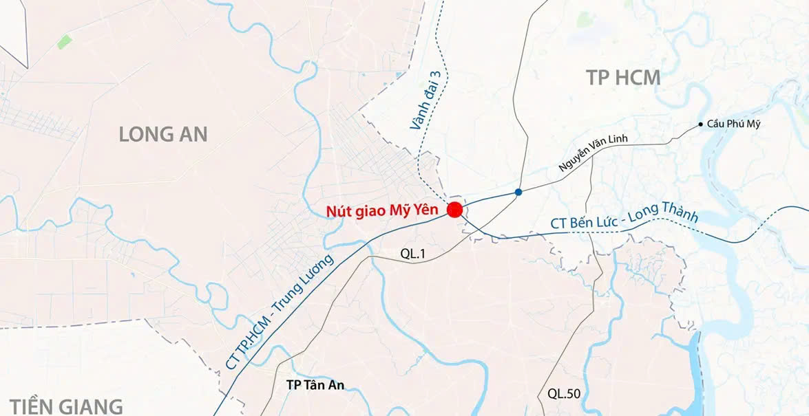 Tại Bến Lức, Long An – Nút giao Mỹ Yên là điểm kết nối quan trọng giữa ba trục giao thông chiến lược: cao tốc Thành phố Hồ Chí Minh – Trung Lương, cao tốc Bến Lức – Long Thành, và Đường Vành đai 3 Thành phố Hồ Chí Minh. Chính bởi thể, vị trí này chính là cửa ngõ kết nối đầy tiềm năng cho sự phát triển của thị trường bất động sản Long An.