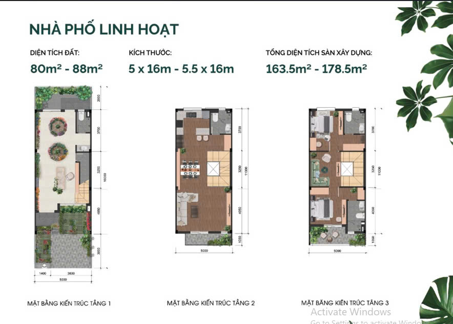 • Diện tích xây dựng : 163.5m2 – 178.5m2 – 236.9m2