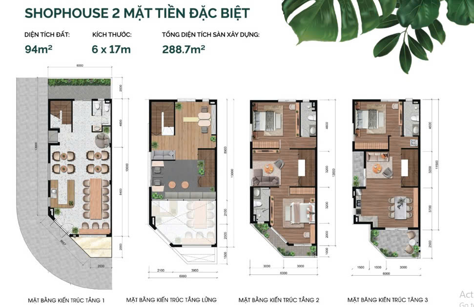 • Shophouse Larita 2 mặt tiền đặc biệt : 94m2 (6×17 )  – DTXD: 288.7m2