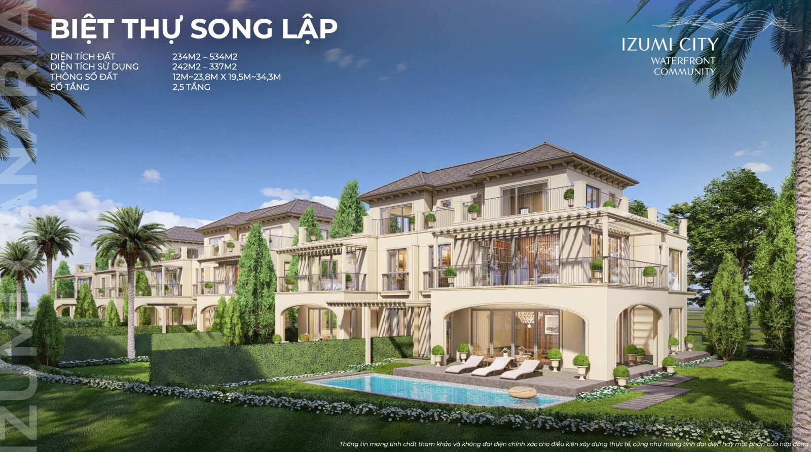 - Biệt thự song lập 12×19.5: 03 tầng, Sang trọng, không gian mở, view công viên.