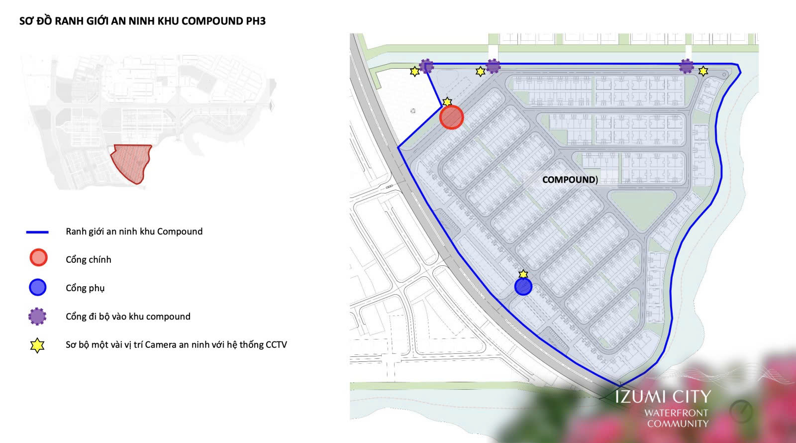 - Quy hoạch: Phân khu khép kín (compound), hai mặt giáp sông và kênh đào