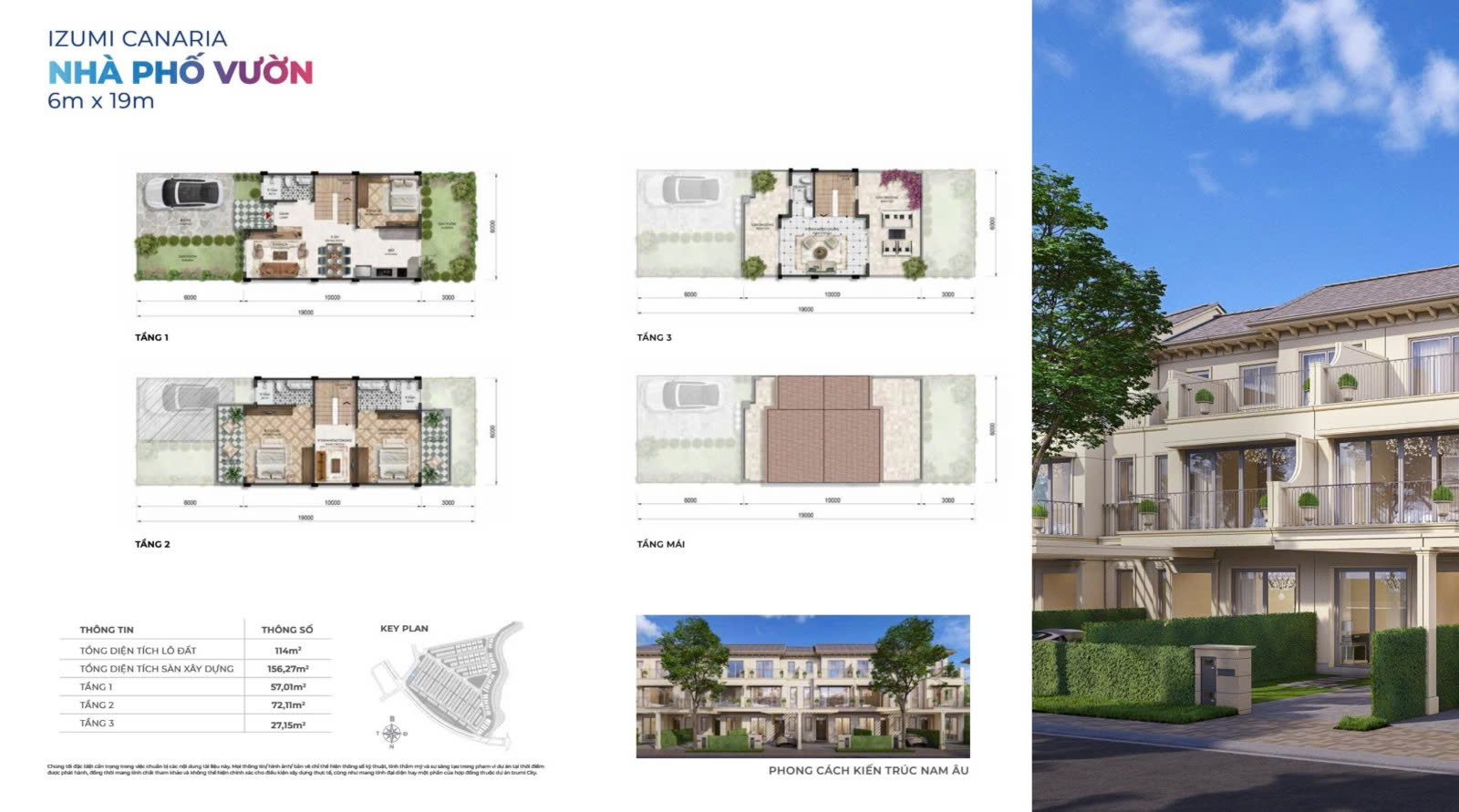 - 20 Căn Nhà phố vườn đường 6m: 6×19 – 114m²: 03 tầng – Thiết kế hiện đại, sân trước – vườn sau, ánh sáng tự nhiên.